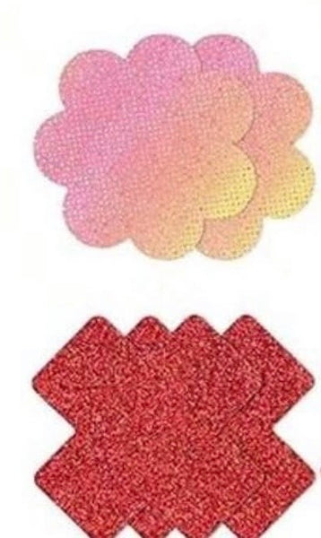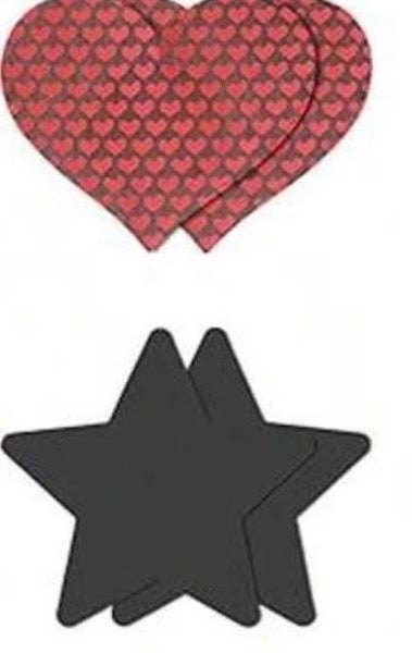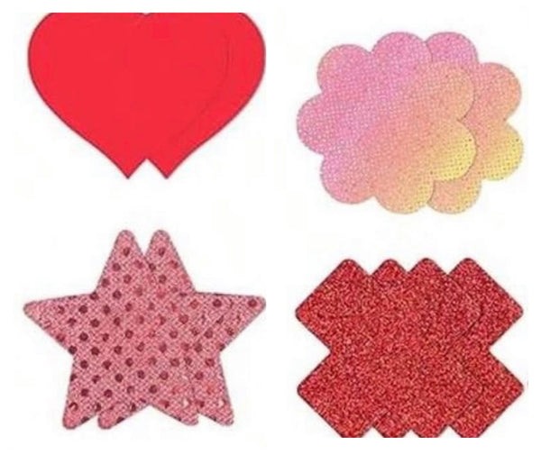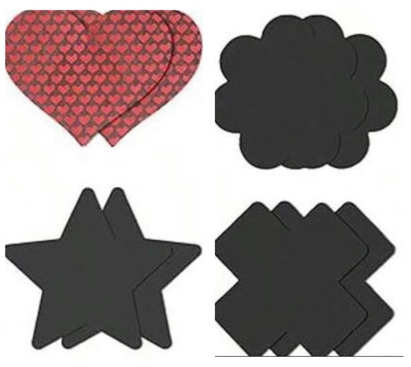 Crafted with smooth, skin-friendly material and a secure, comfortable adhesive, each set offers reliable coverage without sacrificing comfort. The assorted shapes—hearts, stars, florals, and crosses—let you match your mood, your look, or your intention. Choose from sultry matte black, fiery red, soft iridescent hues, and eye-catching textures that elevate these from functional to fetish-forward fashion.
